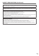 Part Names nFront view 1. LCD panel 2. Power LED (See page 15.) 1 2 nRear view 1 2 4 13 14 15 16 17 18 19 5 6 7 8 9 10 11 1. 2. 3. 4. 5. 6. 7. 8. 9. 10. 11. 12. Speakers Vents Attachment plate (for stand) RS-232C input terminal (See page 12.) PC/AV HDMI 1 input terminal (See page 12.) PC/AV HDMI 2 input terminal (See page 12.) DisplayPort input terminal (See page 12.) Audio input terminal (See page 12.) Headphone terminal (See page 12.) AC input terminal (See page 13.