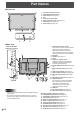 Part Names nFront view 1 1 2 2 2 1. 2. 3. 4. 5. 6. 7. 8. Touch pen ultrasonic sensor Infrared transmitter/receiver Power button (See page 16.) Tray Touch panel power LED Remote control sensor (See page 15.) Input switch (See page 21.) Power LED (See page 16.) 2 3 4 5 6 7 8 nRear view When the PN-ZB01 (optional) is attached 16 17 1 18 19 23 20 21 22 24 25 5 6 11 7 8 9 10 12 2 13 Caution • Consult your SHARP dealer for attachment/detachment of optional parts.
