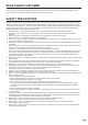 Contents IMPORTANT INFORMATION.............................................3 DEAR SHARP CUSTOMER...............................................5 SAFETY PRECAUTIONS...................................................5 TIPS AND SAFETY INSTRUCTIONS................................7 MOUNTING PRECAUTIONS.............................................8 Mounting Precautions (For SHARP dealers and service engineers)............................................................8 Supplied Components........................