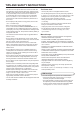 SAFETY PRECAUTIONS (Continued) 19. Batteries — Incorrect use of batteries may cause the batteries to burst or ignite. A leaky battery may corrode the equipment, dirty your hands or spoil your clothing. In order to avoid these problems, make sure to observe the precautions below: • Use the specified batteries only. • Install the batteries with due attention to the plus (+) and minus (-) sides of the batteries according to the instructions in the compartment. • Do not mix old and new batteries.