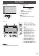 Part Names nFront view Accessing the operation panel 1 1. 2. 3. 4. 5. LCD panel Remote control sensor (See page 15.) Input switch (See page 18.) Power switch (See page 16.) Power LED (See page 16.) TIPS • Use a pointed object such as a pen tip to press the switches. 3 2 4 5 nRear view 2 1 12 13 14 15 16 17 18 3 3 4 5 6 7 8 9 1011 19 1. Optional attachment section This section is used to connect optional hardware for function expansion.