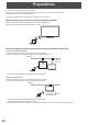 Introduction n Wireless • On the monitor you can display a screen of a computer that is connected to the same network as the monitor’s built-in wireless controller. • You can display the screen by wireless LAN. A A Computer n Simultaneous display • You can display the screens of up to 4 computers at once. A A B C D B C D n Direct Drawing • You can use the monitor as a white board. (See page 32.) • Using a touch pen, you can write on the displayed screen in Wireless mode. (See page 24.