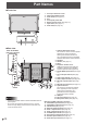 Part Names nFront view 1 1 1. 2. 3. 4. 5. 6. 7. 8. 2 2 2 Touch pen ultrasonic sensor Infrared transmitter/receiver Power button (See page 16.) Tray Touch panel power LED Remote control sensor (See page 15.) Input switch (See page 21.) Power LED (See page 16.) 2 3 4 5 6 7 8 nRear view When the PN-ZB01 (optional) is attached 16 17 1 18 19 23 20 21 22 24 25 5 6 11 7 8 9 10 12 2 13 Caution • Consult your SHARP dealer for attachment/detachment of optional parts.