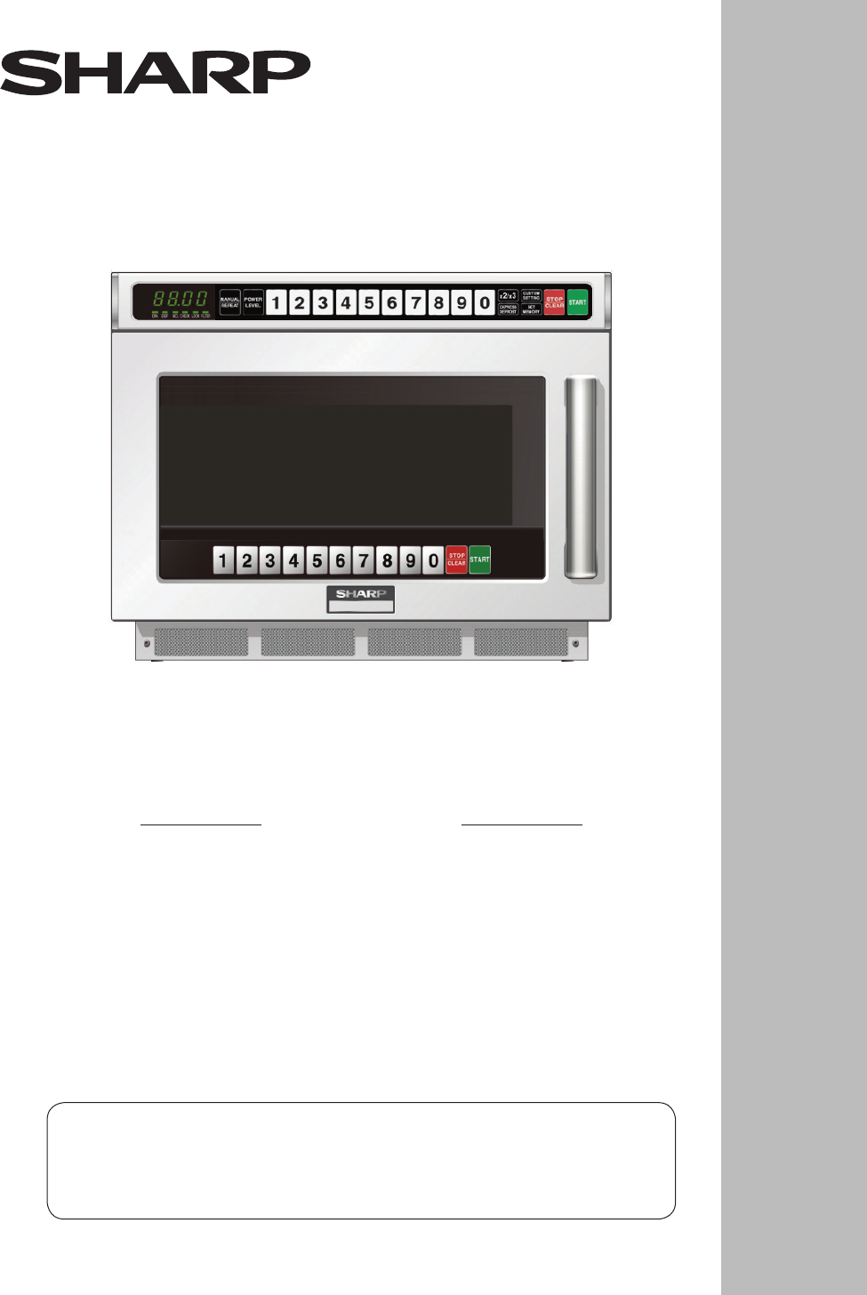 R-1900M INTELLIGENT THINKING Model COMMERCIAL MICROWAVE OVEN OPERATION MANUAL OPERATION MANUAL This operation manual contains important information which you should read carefully before using your microwave oven. IMPORTANT:There may be a serious risk to health if this operation manual is not followed or if the oven is modified so that it operates with the door open. R-1900M [EN].