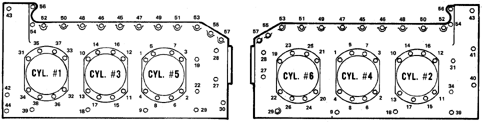 10. Tighten bolts No. 40 thru 57 to specified torque in