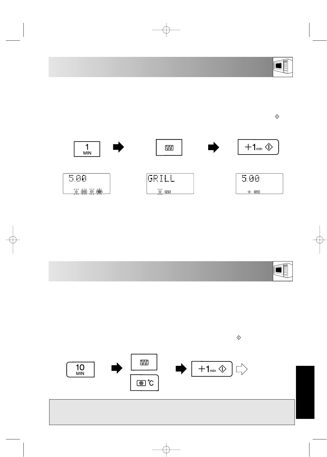 Example: Suppose you want to cook cheese on toast for 5 minutes (Place toast on the high rack.)
