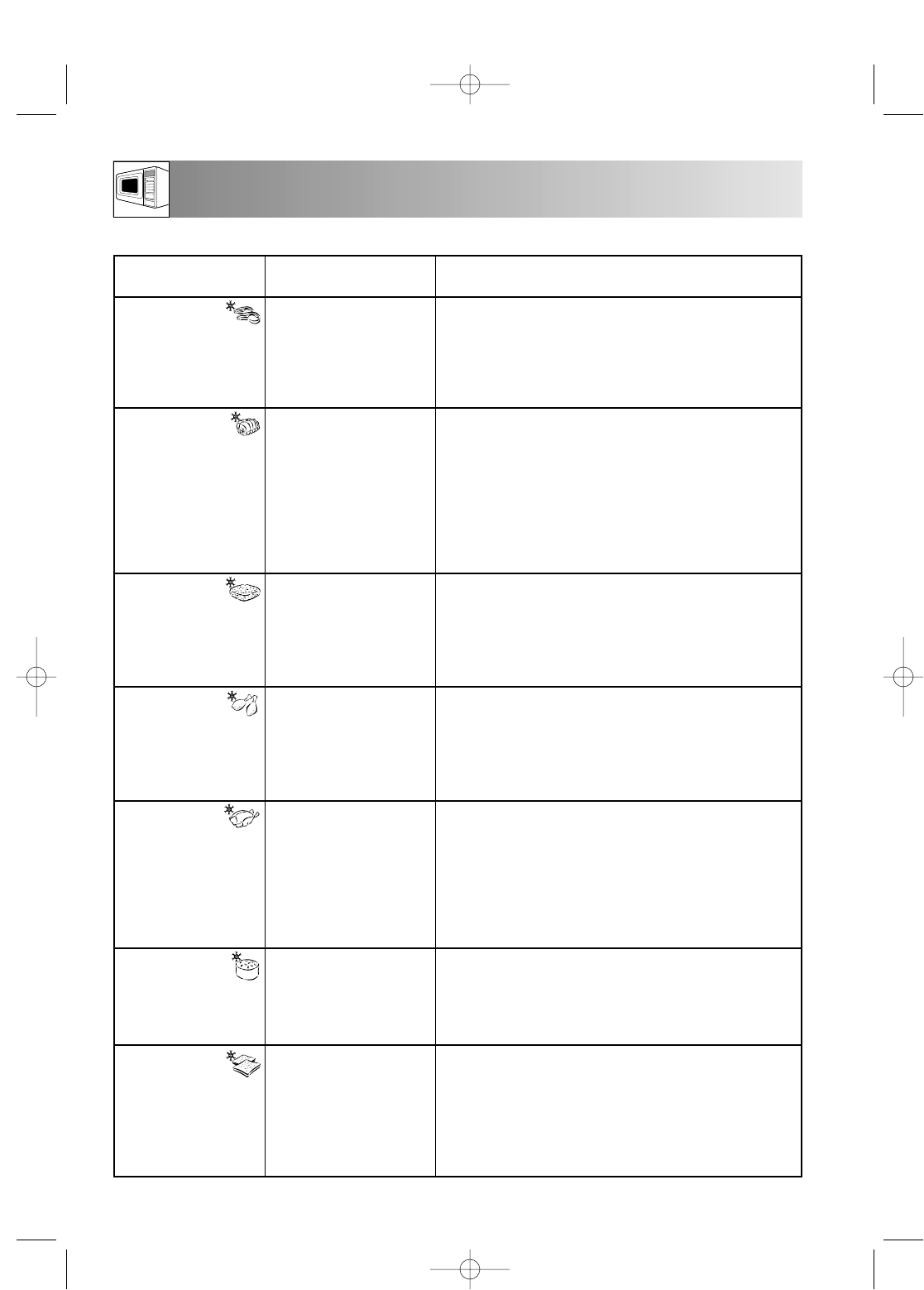 • After defrosting, cover with aluminium foil and stand