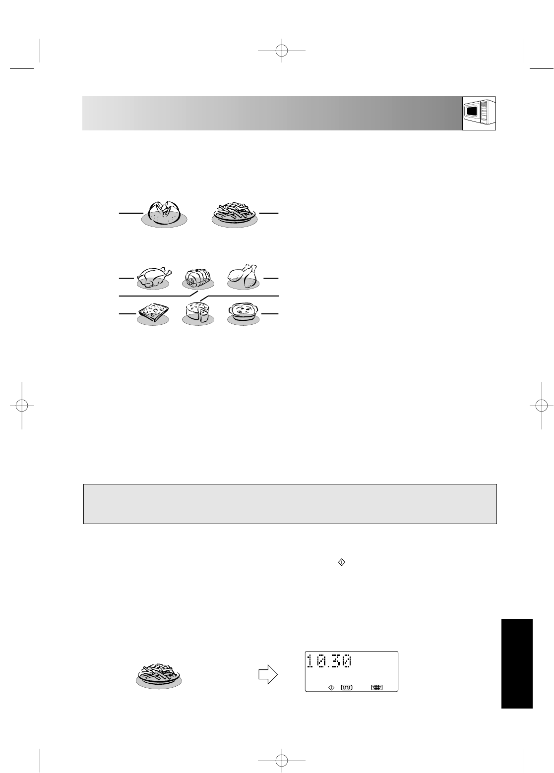 When manipulation is required (eg: to turn food over) the oven will stop and the audible signal will sound, the display