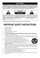 WARNING TO PREVENT FIRE OF SHOCK HAZARD, DO NOT USE THIS PLUG WITH AN EXTENSION CORD, RECEPTACLE OR OTHER OUTLET UNLESS THE BLADES CAN BE FULLY INSERTED TO PREVENT BLADE EXPOSURE. TO PREVENT FIRE OR SHOCK HAZARD, DO NOT EXPOSE THIS APPLIANCE TO RAIN OR MOISTURE. The rating plate is located at the back panel of the apparatus. IMPORTANT SAFETY INSTRUCTIONS 1. 2. 3. 4. 5. 6. 7. 8. 9. 10. 11. 12. 13. 14. 15. 16. 17. Read these instructions. Keep these instructions. Heed all warnings.
