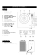LOCATION OF CONTROLS MAIN UNIT TOP PANEL 1. 2. 3. 4. 5. 6. 7. 8. 9. 10. 11. 12. 13. TURNTABLE PLATTER TURNTABLE SHAFT 45 RPM ADAPTOR TONE ARM LIFT LEVER AUTO STOP ON/OFF SELECTOR 33/45/78 RPM SELECTOR TONE ARM TONE ARM LATCH STYLUS CARTRIDGE POWER/FUNCTION INDICATOR STEREO HEADPHONE JACK POWER/VOLUME CONTROL FUNCTION SELECTOR (PHONO / AUX IN / IN) BACK PANEL 14. 15. 16. 17. AUX IN JACK SPEAKER OUTPUT JACKS (R/L) PITCH CONTROL DC IN JACK SPEAKER UNITS 18. BASS REFLEX PORT 19.