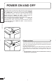 I POWER ON AND OFF GETTING STARTED Power on and off The power switch is located on the right side of the copier. When the power switch is turned to the “ON” position, the message “WARMING UP, PLEASE WAIT.” will appear in the message display. Warming up takes about 5 minutes. Once the copier is ready, the message display will change to “READY TO COPY.”, and the START key indicator will light up, indicating that copying is possible.