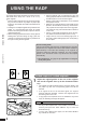 USING THE RADF MAKING COPIES The RADF (Reversing Automatic Document Feeder) will handle A5 to A3 (5-1/2" x 8-1/2" to 11" x 17") sized originals. ● Before loading originals into the document feeder tray, be sure to remove any staples or paper clips from them. The RADF can handle a maximum of 50 originals. ● Damaged or crumpled originals may misfeed in the RADF. It is recommended that these be copied from the document glass and the copies be used as original documents.