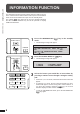 GETTING STARTED INFORMATION FUNCTION Information function The information function provides a quick reference guide to the use of the various features and functions of this copier. The information mode can be entered when the copier is in the standby mode. The symbol ( ) may appear at the end of a message indicating that the SCROLL DISPLAY key should be pressed to display additional information. 1 SCROLL DISPLAY Press the INFORMATION ( mode. ● ) key in the standby The following message will appear.