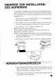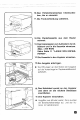 10.Den Entwicklereinschub hineinschieben, bis er einrastet. 11. Die Frontverkleidung schliefen. 12.Die Papierkassette aus dem Beutel nehmen. 13. Das Kopierpapier zum Auflockern durchblättern und in die Kassette einsetzen. (Max.: 250 Blatt) Siehe Seite 11 “LADEN VON KOPIERPAPIER'", 14. Die Kassette in den Kopierer einsetzen. 18.Die Ausgabe anbringen. ® Die Öffnungen an den Selten der Ausgabe auf die Vorspringe im PapierauslaBbereich aussetzen. 16.