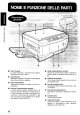 NOME E FUNZIONE DELLE PARTI Unita di sviluppo Tirarla fuori per riempirla di fonder. Sostituire 1l Gruppo per la colpa monocromatica in rosso, blu, marrone o verde. {Sollevare il manico e poi rimuovere.) Tirante unita di sviluppo Serve per rimuovere/attaccare Unita di sviluppo. Leva di bloccaggio unita di sviluppo Tirarla in gilet per sbloccare finita di sviluppo. Leva di sganci meta superiore Azaria per sollevare |a meta superiore della copiatrice.