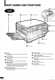 PART NAMES AND FUNCTIONS @ Manual bypass Overall Y0101 o Exit tray 9 Document caver Documented glass @ Front cover 9 Paper cassette @ Power switch @ Exit tray Finished copies (up to approx. 100 sheets) are deposited on the exit tray. € Document cover Set the original and close the document cover before annoying starts. € Document glass Place the original to be copied on the endearment glass.