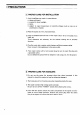 [ PRECAUTIONS PROPER CARE FOR INSTALLATION 1. Avoid installing your copier in areas that are: o damp and humid, e exposed to direct sunlight, e dusty, * subject to rapid temperature or humidity changes {such as near an air conditioner or heater). 2, Place the copier on a firm, horizontal base. 3. Keep the left hand side and rear of the copier about 10 cm {4 inches) from walls, ete. These clearances are necessary for the internal cooling fan to properly function, 4.