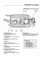 Onderdelen en functies BUITENKANT VAN DE MACHINE 1. Papier opvangbak. De gemaakte kopieën kamen in deze opvangbak terecht. 2. Blad voor originelen. 3. Glasplaat. Het te kopiëren origineel wordt hierop gelegd. 4. A-dekplaat voor originelen {optioneel). 5. Bedieningspaneel. Alle bedieningspunten zijn hier met het oog op het bedieningsgemak genoemd. 6. Bakje voor paperclips. 7. Ontwikkel-eenheid. Trek deze eenheid uit om de toner-patroon te verwisselen of om van kleur-eenheid te veranderen. 8.