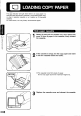 ~ Paper size indicator LOADING COPY PAPER 2 3 5 Gently lift and draw out the front-loading paper tray. If there is paper in the tray, firmly reinsert the tray. if the tray is empty, push the pressure plate until it locks into position. Fan the copy paper and insert it into the tray below the hooks. ® The tray holds 250 sheets of paper. Do ot goad paper above the maximum height fine. To load with different size paper, squeeze and slide the two width adjustment plates.