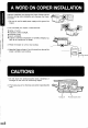 A WORD ON COPIER INSTALLATION Improper installation may damage the Copier. Please note the following during initial installation and whenever the Copier is moved. 1. Be sure to use the rated power supply and 1o ground the Copier. ilia ¥kl y e lel SR Do not install your Copley in areas that are: damp or humid, exposed to direct sunlight, extremely dusty, poorly ventilated, subject to extreme temperature or humidity changes, e.g. near an air conditioner or heater. lessee 3.