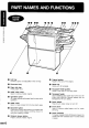 ~ PART NAMES AND FUNCTIONS Fusing unit dock fever Press to release the fusing unit. Toner hopper Transport lever Tums to open the transport section, Photo conductive drum Copy images are formed on the superconductor coated on the photo conductive drum. Corona unit The corona is used to charge the photo conductive drum. Display contrast control Turn to adjust the display contrast, Developer unit Toner collecting container Used toner is collected here. Replace when indicated on the display.