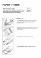 PAPIER / TONER 3 Kopieerpapier laden ‘ 3 Als het | & dlcauelample brandt is er geen lapper in de i gekozen Gasselte, of Is de cassette sint goed geinstallesrd, cassette is helemaal niet geïnstalleerd. Gebruik voor de beste | resultaten papier dat door SHARP wordt aanbevolen, CASSETTES 1. Til en trek de cassette voorzichtig uit de printer en verwijder de deksel. Als er zich nog voldoende papier in de cassette bevindt duw dan de cassette stevig terug in de printer totdat het indicatielampje uitgaat. 2.