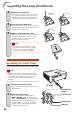 Do not remove the lamp unit from the projector right after use. The lamp will be very hot and may cause