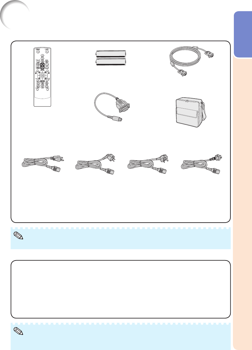 * Which power cords are supplied along with your projector depends on the region. Use the power