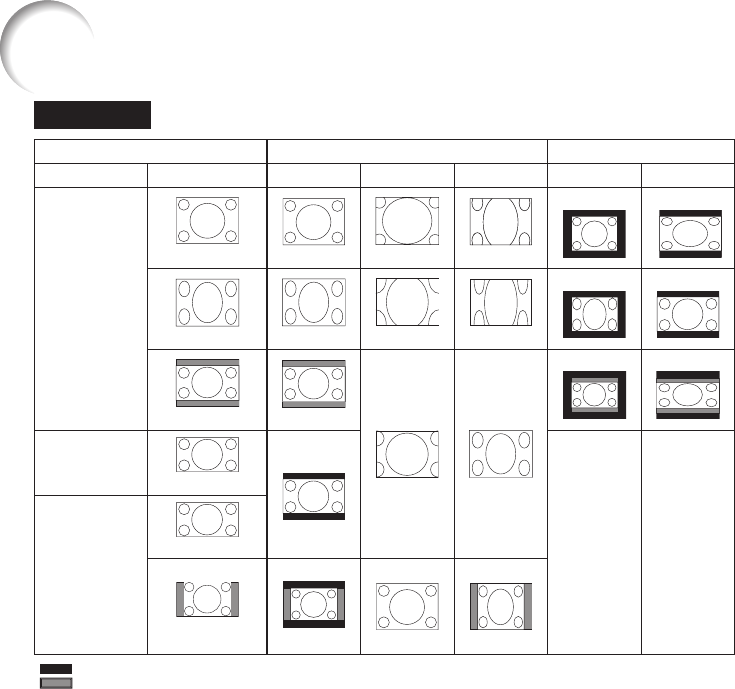 Input signal For 4:3 screen For 16:9 screen