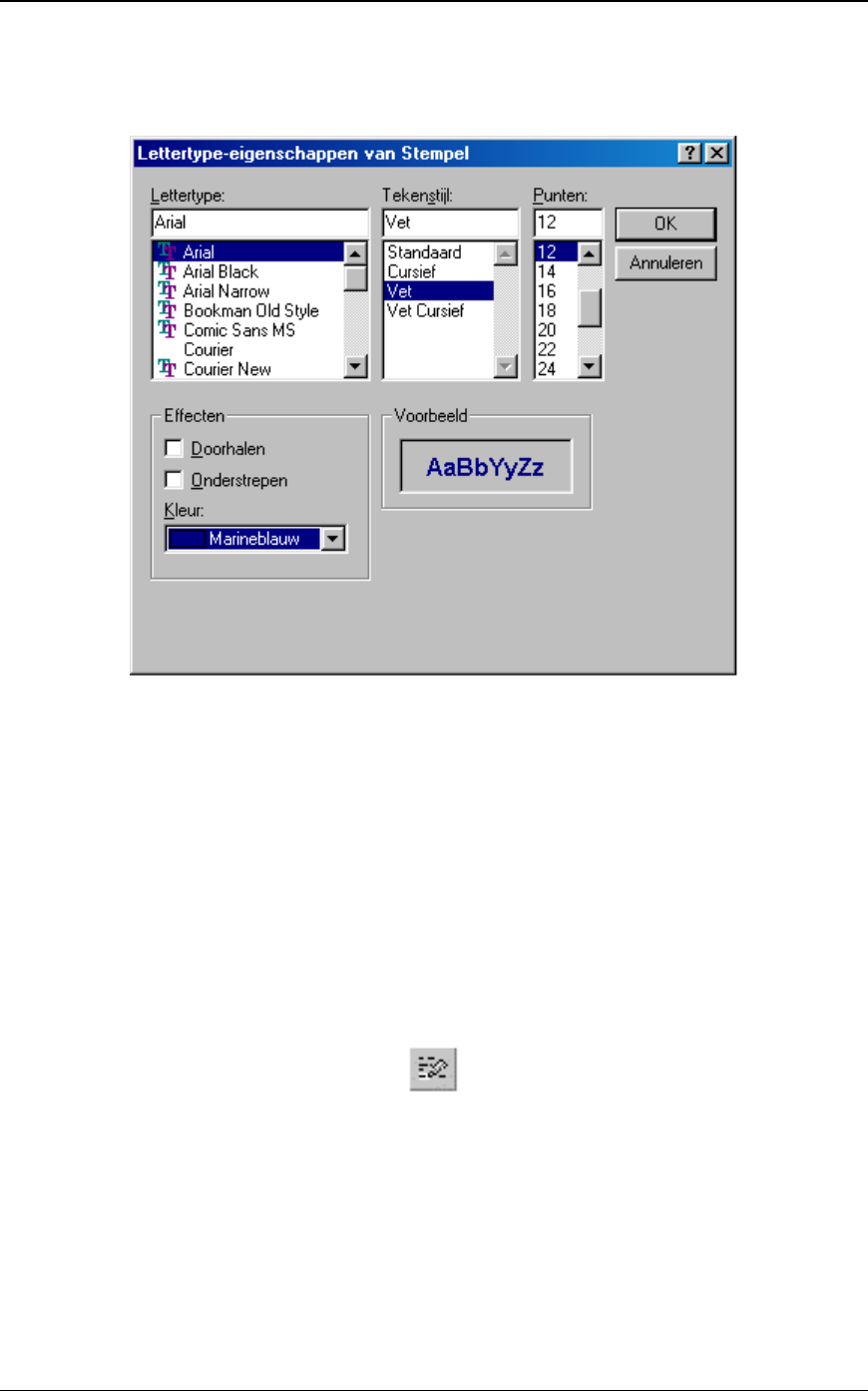 Dialoogvenster Lettertype-eigenschappen van stempel