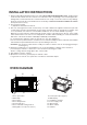 INSTALLATION INSTRUCTIONS 1. Remove all packing materials from the oven cavity, (do not remove the waveguide cover), and the feature sticker from the outside of the door, if there is one. Check the unit for any damage, such as a misaligned door, damaged door seals around the door or dents inside the oven cavity or on the door. If there is any damage, please do not operate the oven until it has been checked by a SERVICE CENTRE APPROVED BY SHARP and repaired, if necessary. 2.