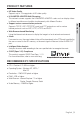 CONTENTS OVERVIEW INSTALLATION & CONNECTION 24 Important Safety Instructions Product Features Recomended PC Specifications What’s Included At a Glance (SNB-5000) At a Glance (SND-5080) At a Glance (SND-5080F) At a Glance (SNV-5080) 24 26 28 32 33 Installation (SND-5080) Installation (SND-5080F) Installation (SNV-5080) Mounting the Lens Inserting/Removing an SD Memory Card Memory Card Information (Not Included) Connecting with other Device 36 37 NETWORK CONNECTION AND SETUP 42 42 43 44 45 46 47 50
