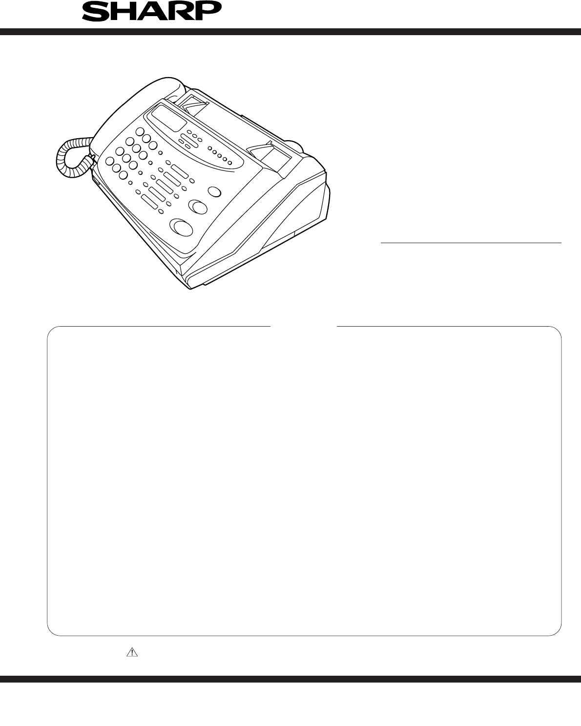 UX-258TH FO-475TH CAUTION FOR BATTERY REPLACEMENT (Danish) ADVARSEL ! Lithiumbatteri-Eksplosionsfare ved fejlagtig håndtering. Udskiftning må kun ske med batteri af samme fabrikat og type. Levér det brugte batteri tilbage til leverandoren. (English) Caution ! Danger of explosion if battery is incorrectly replaced. Replace only with the same or equivalent type recommended by the equipment manufacturer. Discard used batteries according to manufacturer’s instructions.