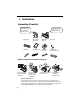 1. Installation Unpacking Checklist Before setting up, make sure you have all of the following items. If any are missing, contact your dealer or retailer. Paper tray Paper tray extension Operation manual Gears (2) Handset Handset cord Telephone line cord Imaging film (initial starter roll) Points to keep in mind when setting up Do not place the machine in direct sunlight. Do not place the machine near heaters or air conditioners. Keep dust away from the machine.