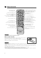 TABLE DES MATIÈRES Enregistrement Informations générales CONSEILS DE SÉCURITÉ ET PRÉCAUTIONS IMPORTANTES ........................... Caractéristiques .................................................... Accessoires ........................................................... Principales composantes du magnétoscope ..... Télécommande ...................................................... • Mise en place des piles 3 6 6 7 8 Installation Branchement du magnétoscope .........................