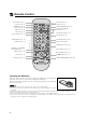 Remote Control TV/VCR buttons (p. 17) PLAY button (p. 23) POWER button (p. 17) REW button (p. 24) STOP button (p. 23) EJECT button (p. 23) FF button (p. 24) TAMPER PROOF button (p. 35) CH (CHANNEL) ∂/ƒ buttons (p. 29) REC button (p. 26) Numbered buttons (p. 19) 100/AM/PM button (p. 19) SLOW button (p. 24) PAUSE/STILL button (p. 24) INPUT button (p. 28) SKIP SEARCH button (p. 34) REPLAY button (p. 34) ZERO BACK button (p. 33) j/k buttons (SLOW j/k, DPSS j/k) (p. 34) MENU button (p. 15) SET button (p.