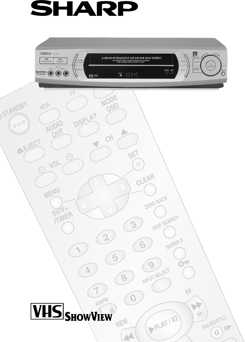 VC-FH3SVM FINAL COVER 19/1/00 8:52 am Page 2 Beste SHARP-klant Dank u voor uw aankoop van deze SHARP VCR. Als u er zorgvuldig mee omgaat, zal het hele gezin er jaren plezier aan beleven. Lees deze gebruiksaanwijzing aandachtig door voordat u de VCR gaat gebruiken. Auteursrecht ● Op audiovisueel materiaal kunnen auteursrechten rusten. In dat geval mag het niet worden opgenomen zonder toestemming van de rechthebbende. Informeer naar de betreffende wetten in uw land.