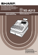 A213_1 Quick Start Guide 06.4.28 8:20 PM Page 1 English INTRODUCTION Thank you very much for your purchase of the SHARP Electronic Cash Register, Model XE-A213. Please read this manual carefully before operating your machine in order to gain full understanding of functions and features. Please keep this manual for future reference. It will help you if you encounter any operational problems. CAUTION! English Never install the batteries into the cash register before initializing it.