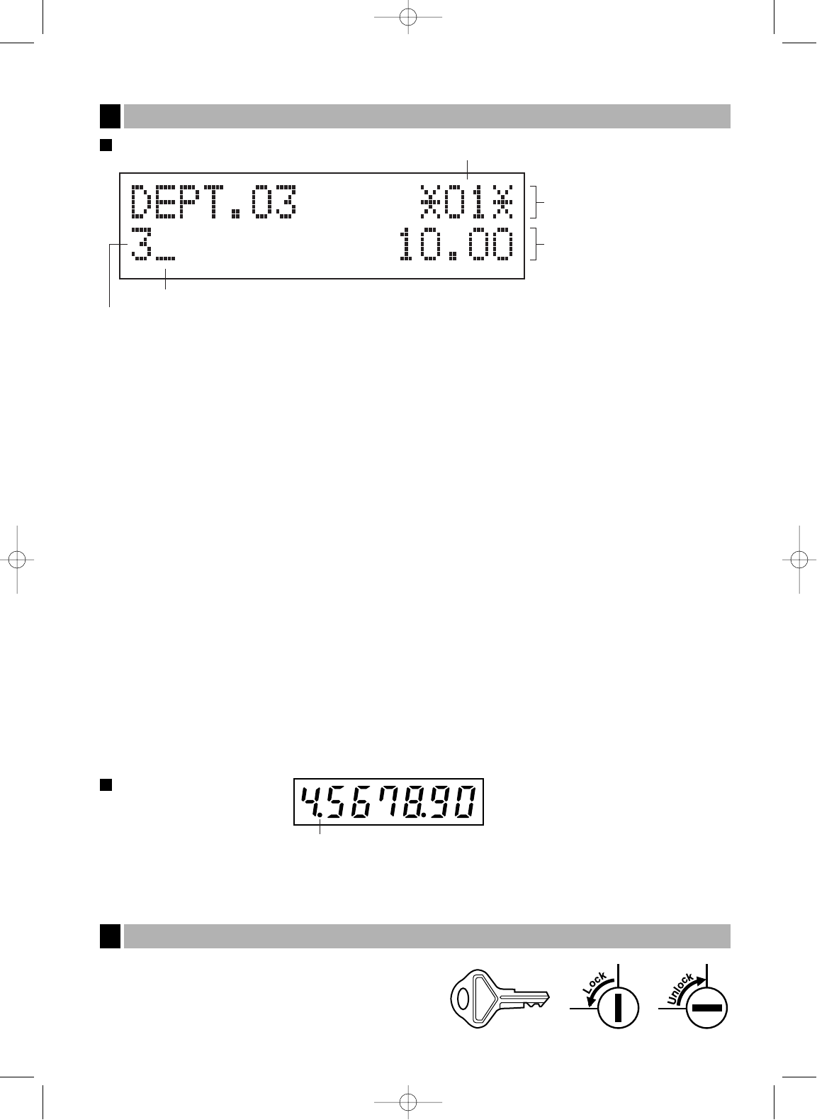 When the cash register goes into the power save mode, the power save mark (decimal point) lights up.