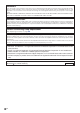 Maintenance indicator Abnormal Normal Problem Cause • Blocked air intake Temperature warning indicator Off Lamp indicator Red on Time to change the lamp. Red on The lamp does (Standby) not illuminate. Power indicator Green on/ Red on • Relocate the projector to an area with proper ventilation (see page 8). The internal • Take the projector to your nearest Red on temperature is • Cooling fan breakSharp Authorized Projector Dealer (Standby) abnormally high.