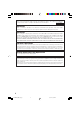 Troubleshooting (Continued) Problem Page Check • Change the input signal type setting. Picture is green on INPUT 1 (COMPONENT)/ • When you cannot select an input signal type, select “Color is faded INPUT 2 (COMPONENT). or poor” in the “Help” menu, after selecting an item other than “sRGB” in “Picture Mode”, and then select an input signal type. Picture is pink (no green) 51 42, 51 on INPUT 1 (RGB)/INPUT 2 (RGB). • Image adjustments are incorrectly set.