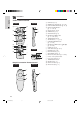 Part Names 1 Press in and downward on the arrow to remove the battery cover. 2 Insert four AA size batteries for the “Power” remote control and two AAA size batteries for the simple presentation remote control making sure their polarities match the Ⳮ and ⳮ marks inside the battery compartment.