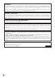 Maintenance indicator Abnormal Normal Problem Cause • Blocked air intake Temperature warning indicator Off Lamp indicator Red on Time to change the lamp. Red on The lamp does (Standby) not illuminate. Power indicator Green on/ Red on • Relocate the projector to an area with proper ventilation (see page 8). The internal • Take the projector to your nearest Red on temperature is • Cooling fan breakSharp Authorized Projector Dealer (Standby) abnormally high.