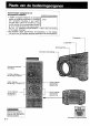 Plaats van de bedieningsorganen——— Opmerkingen aangaande de ! temperatuurindicator: IN-BEELDAANDUIDING * “TEMP” knippert linksboven in het breid indien de projekior oververhit is vanwege | Temp. sen verkeerde installatie of een veront| reinigde filter. Indien de temperatuur nog | verder opkoopt licht de temperatuurindika| tor op en wordt de spanning uitgeschakeld, | Zie blz. 19 “Waarschuwingsindicators” indien deze aanduiding in het beeld verschijnt.