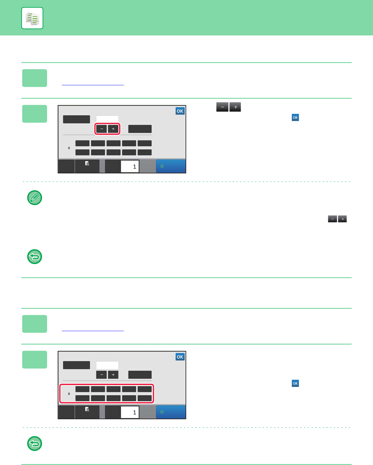 • Up to two frequently used ratio values can be added to the preset ratio key, respectively for enlargement and