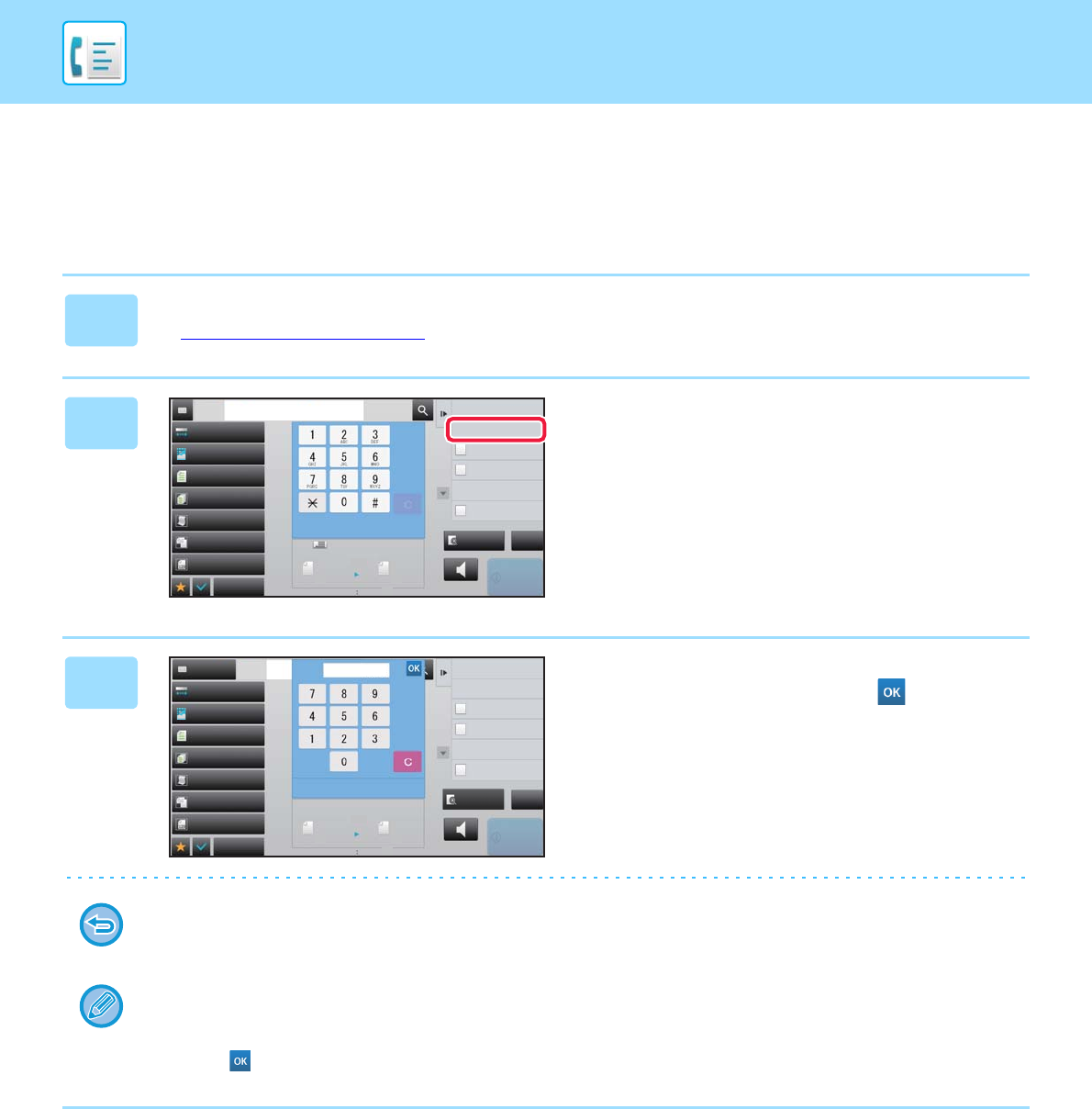 • If you do not know the search number, tap [Print Individual List] on the action panel to print and check the address list.