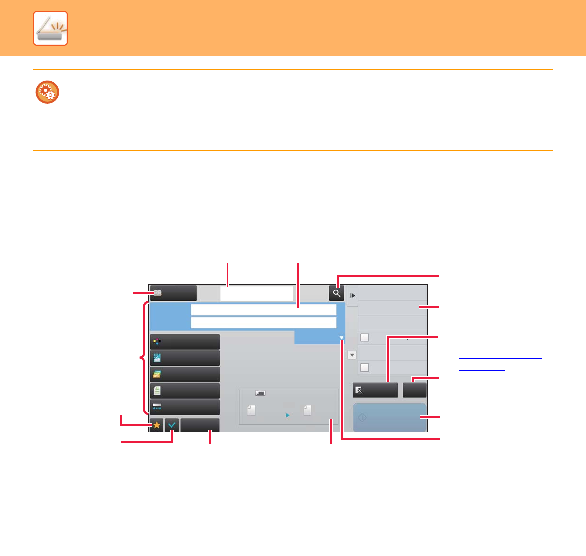 available in the Image Send mode, including Scan to E-mail and Scan to FTP. The base screen layout slightly differs