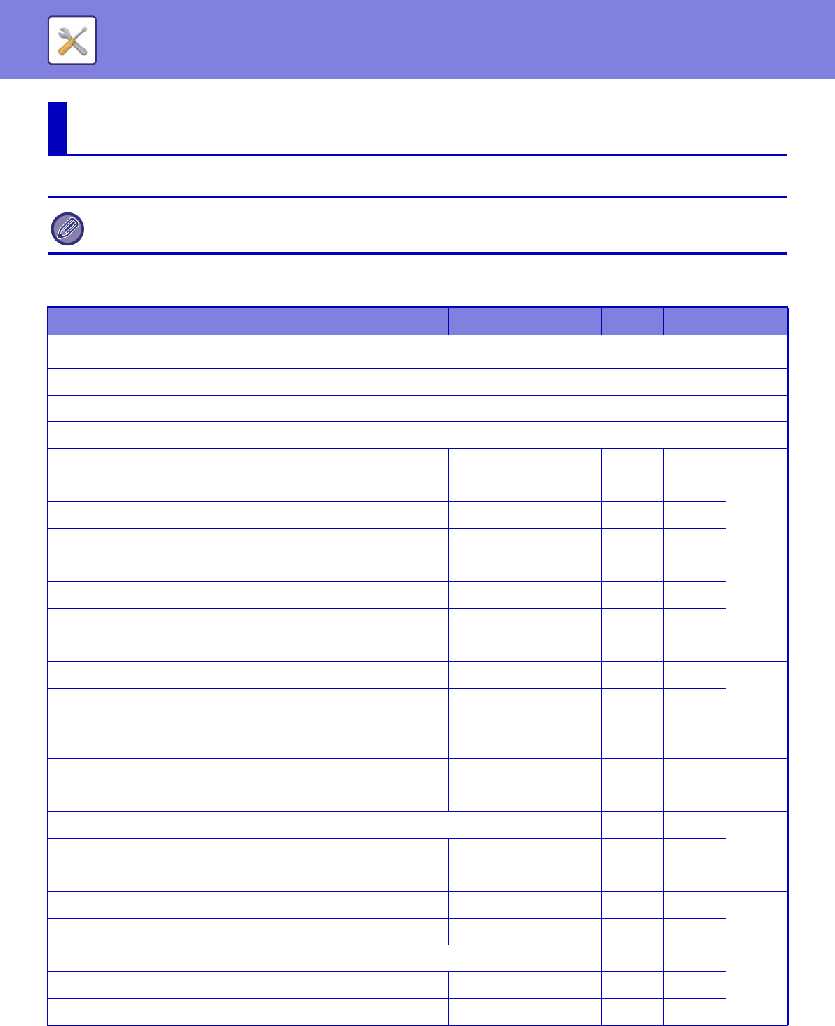 Depending on the machine specifications and peripheral devices installed, it may not be possible to use some settings.