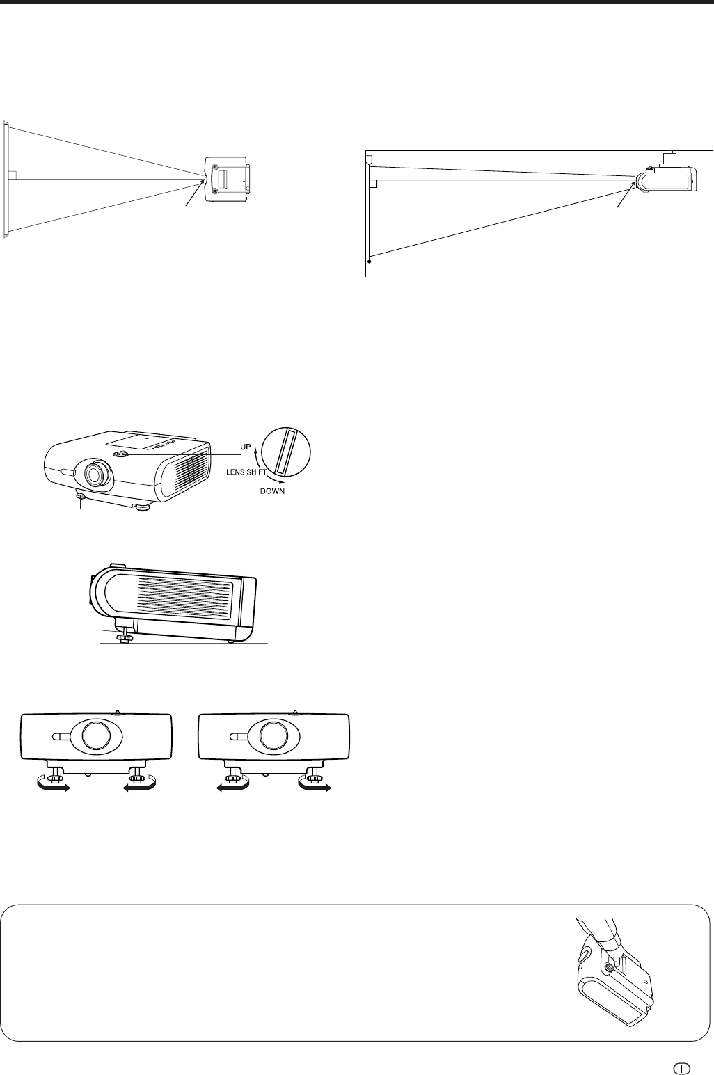 • Se le posizioni relative del proiettore e dello schermo non sono regolate correttamente, l’immagine risulta distorta.