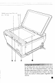 Überstreifen 1. Den Kopierer aus dem Beutel nehmen und das Band, mit dem die Originalabdeckung befestigt ist, entfernen, 2. Die Kniffe an beiden Seiten des Kopierers drinstecken und die Frontverkleidung offenen, 3. Die Originalauflage nach links schieben und die Freigabetaste fair die obere Telekopierer drinstecken, um den Kopierer zu offen, 4. Den Deckel des Trommeleinschubs entfernen. 5. Den Trommeleinschub hineinschieben. 6. Die obere Hilfe sicher schliefen. 7.